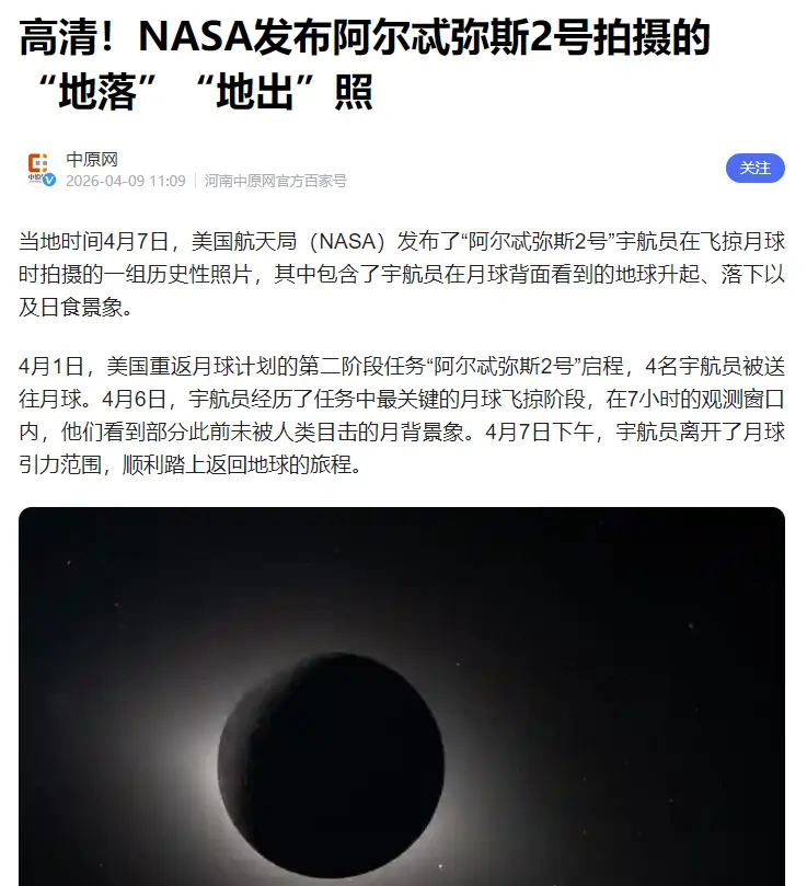 这种方式对轨道计算精度要求极高,稍有偏差就可能偏离航线,4月6日飞船在月球背面拍摄了不少画面,其中最受关注的是地落场景。