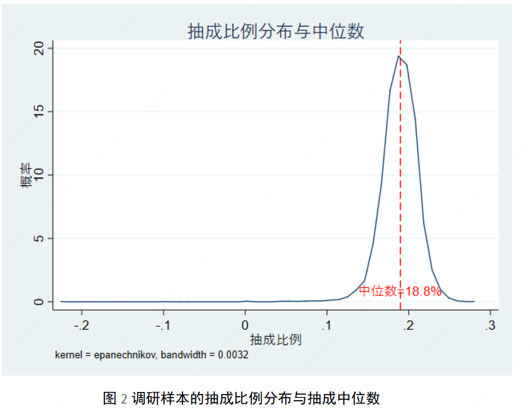 图为报告对多个省份5417个滴滴司机调研得出的抽成比例分布